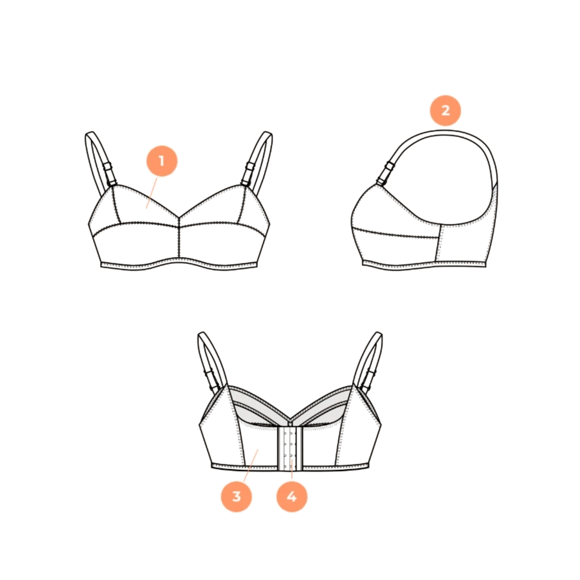 Cómodo cierre de corchete, ajustable en tres posiciones en la espalda. Es suave y está acolchado, para evitar que se clave en la espalda.